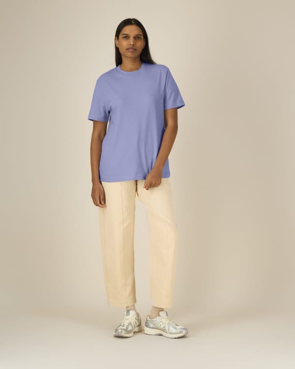 Sparker 2.0 is a high-quality unisex t-shirt with a relaxed fit and a street-worthy look. Made from 100% organic cotton, this 215 g/m² loose-knit single jersey shirt drapes beautifully and offers a very comfortable wearing experience. The pre-washed fabric ensures a soft feel and excellent printing and embroidery results. This model is the perfect choice for custom t-shirts when you are looking for a casual and modern style for, for example, branded clothing, events or resale.